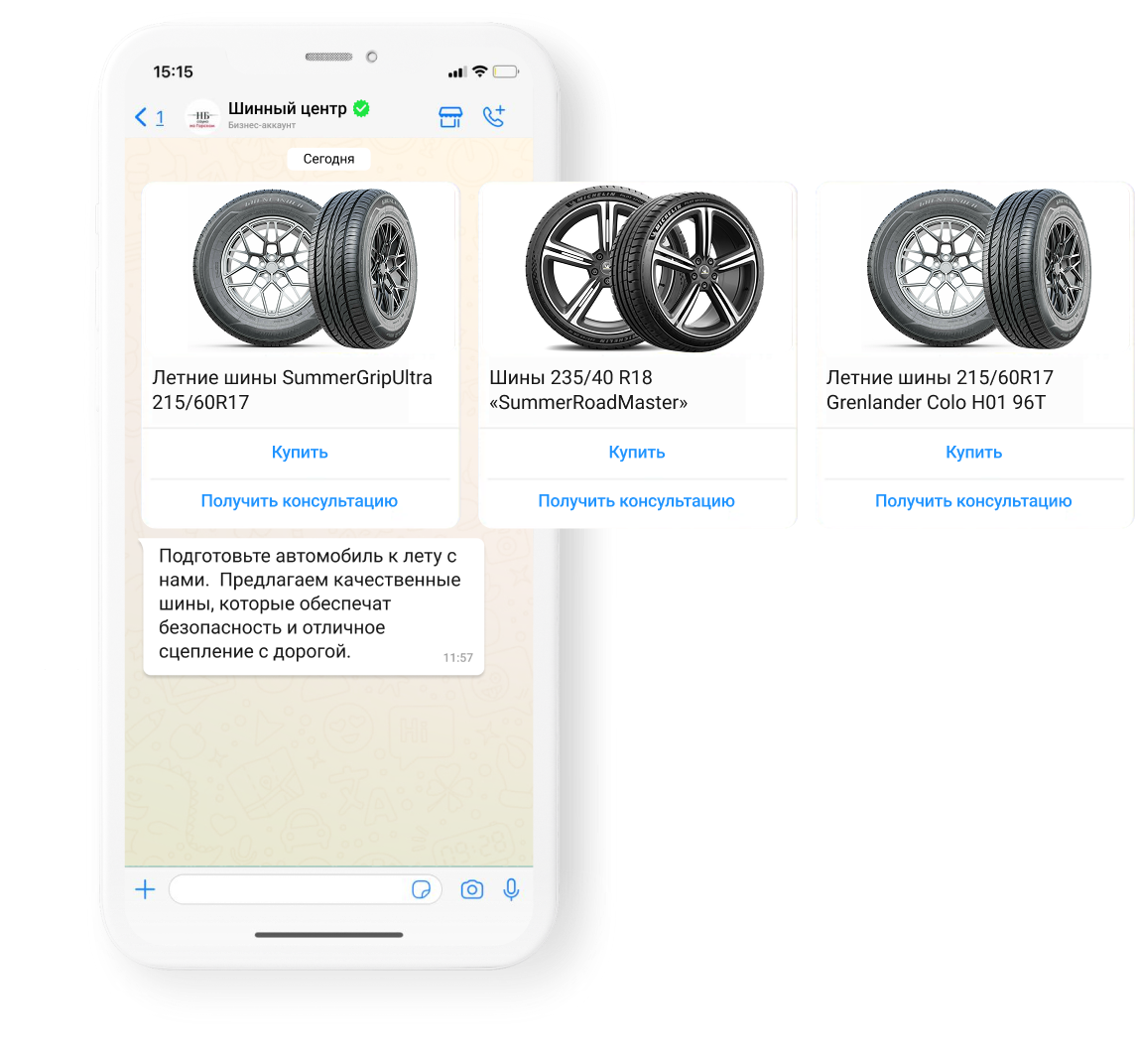 Теперь представьте другой сценарий: клиент получает одно сообщение, в котором все уже разложено по полочкам. Карточки товаров, описания, кнопки действий — все наглядно, без лишнего текста и переходов.